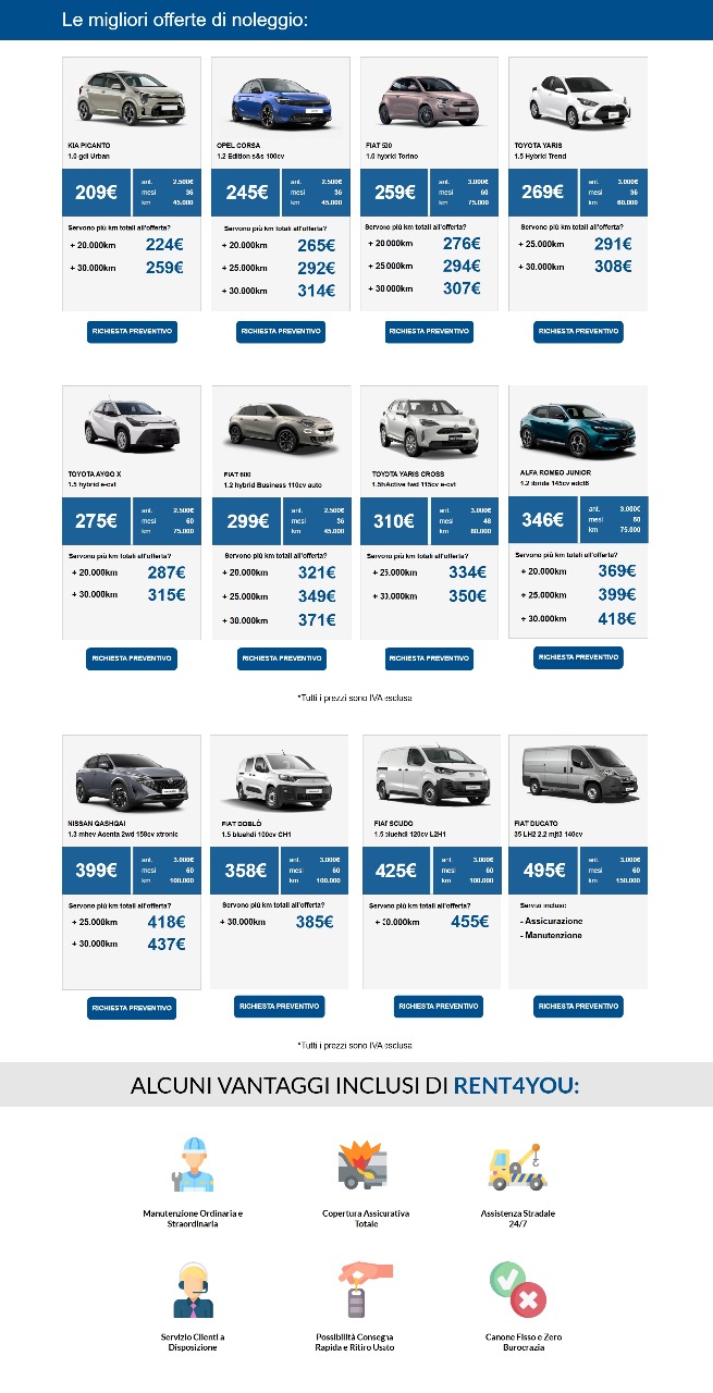 Grazie alla collaborazione con broker, capaci di selezionare le migliori offerte di aziende partner come Drivalia, Santander, Leasys ed altre realtà, possiamo offrire le migliori condizioni.